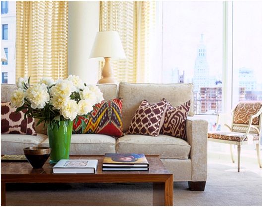 tinh giản và đơn điệu, những chiếc gối tựa với hoa văn họa tiết thổ cẩm